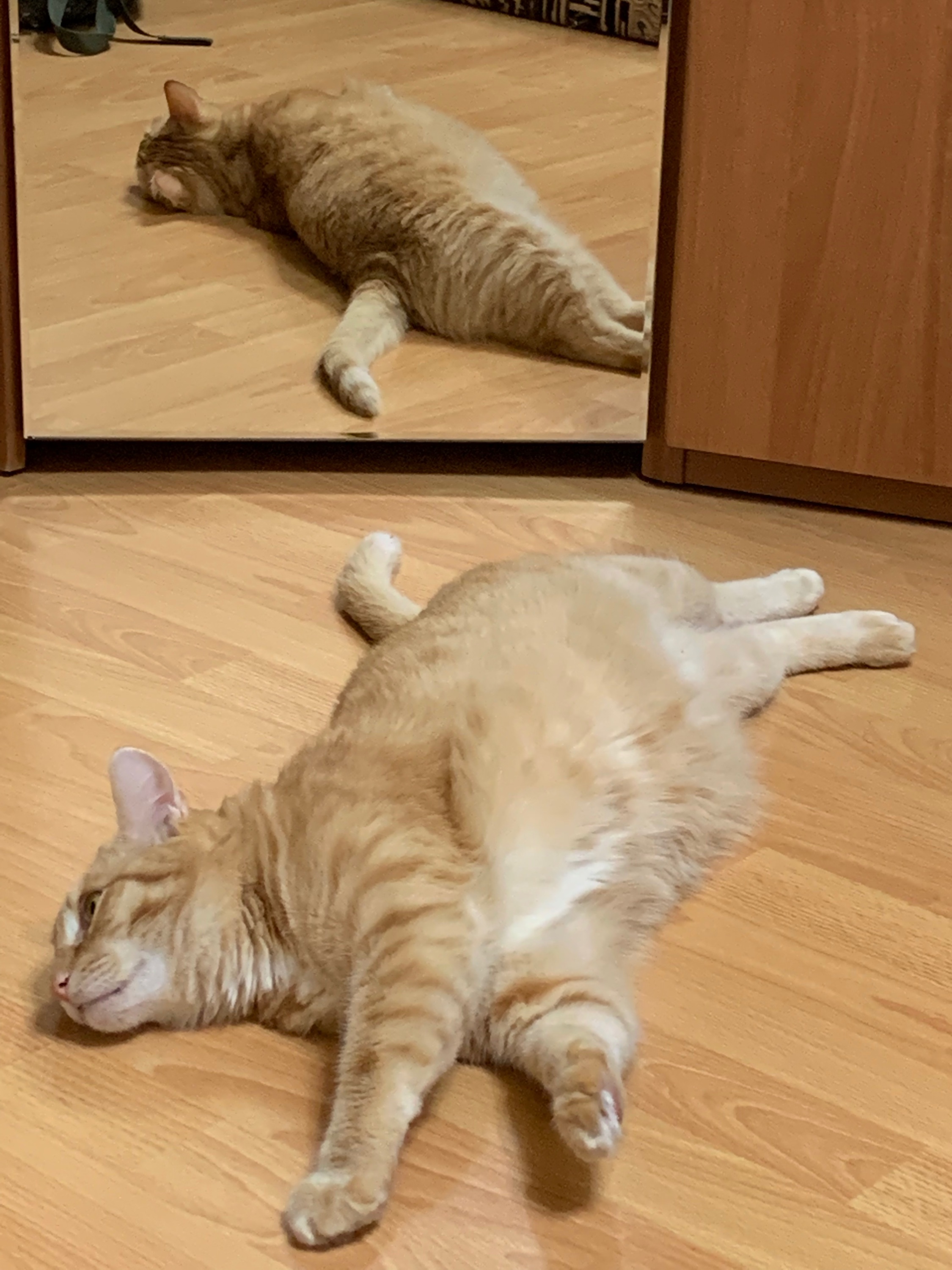 Когда начинаешь обуваться перед выходом из дома, кот идёт в коридор с трагическим видом и укладывается на тумбочку, там где ключи и телефон, причём именно на ключи и телефон. А если его погладить, куснет обязательно. И всегда-всегда провожает... Чтобы нам там, на работе, было стыдно, что оставили его одного.