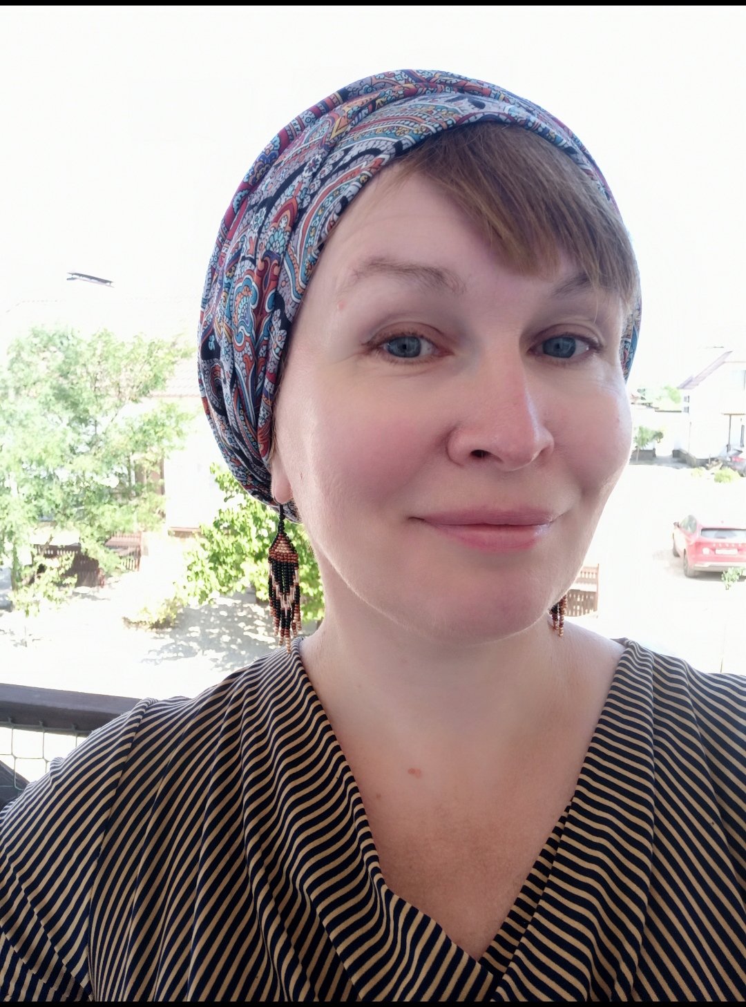 Этим летом возникло такое трио - Фергана-18, серьги из бисера и рыжее платье в полоску.