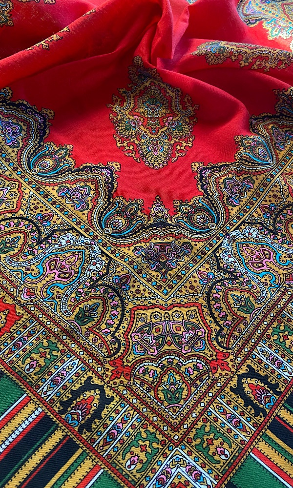 Зрелый возраст с сайта заказывали?Разница в ширине каймы бросается в глаза…. и клетки бахромы кривые ( Да,9500,конечно,за такое качество многовато будет.