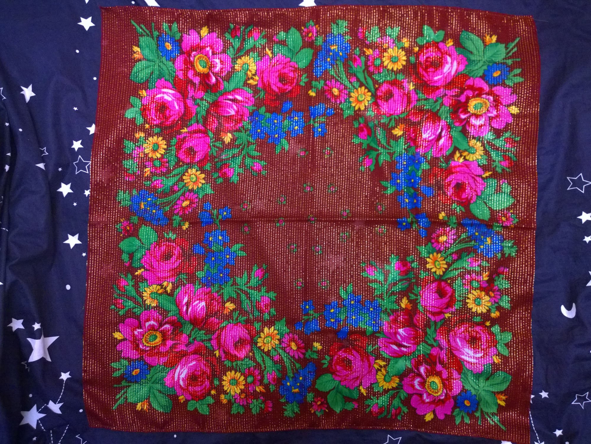ПП платки с люрексом, как мне видится, явление вторичное, в том смысле, что появились они как отголосок моды на всяческое сияние, блеск и т.п. в "диско"-стиле 70-х. В этот же замес - особая любовь наших женщин к золоту, золотым украшениям в то время. И на юге Союза, и в сельской местности такие платки носили гораздо чаще, чем на Севере, Северо-Западе и в городах.