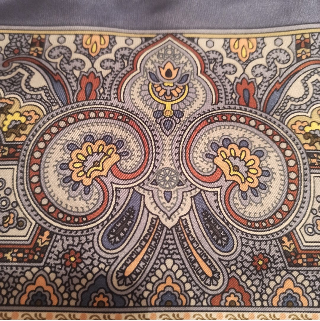 Очень рада, что у меня теперь есть эта шаль. Нарядная и повседневная одновременно. Очень правильный красный (для меня) по кайме--холодноватый. Рисунок в тему "Терема".