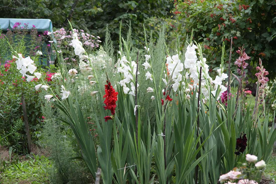 Гладиолусы, не знаю, почему "бабушкины" цветы, у меня такой ассоциации нет, для меня "мужские". Муж любит гладиолусы и не любит георгины, поэтому для него сажаю гладиолусы, для себя георгины.