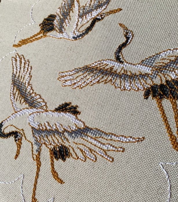 Еще из недавнего-- Журавли. Вышила по просьбе дочери. Это будет подушка.
