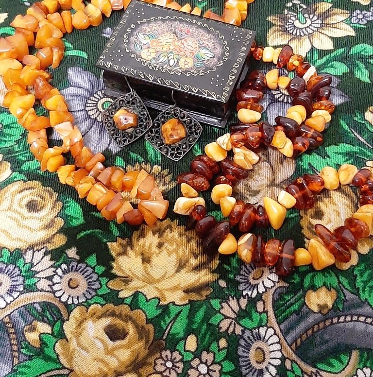Янтарные бусы и серьги 1970-х гг.