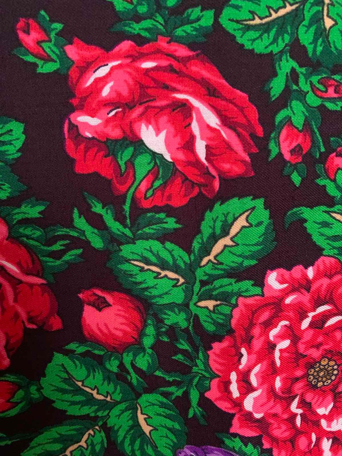 Шаль эффектная - роскошные цветы и выразительная сложная цветовая гамма рисунка. Попыталась с фотографировать, хотя цвет несколько