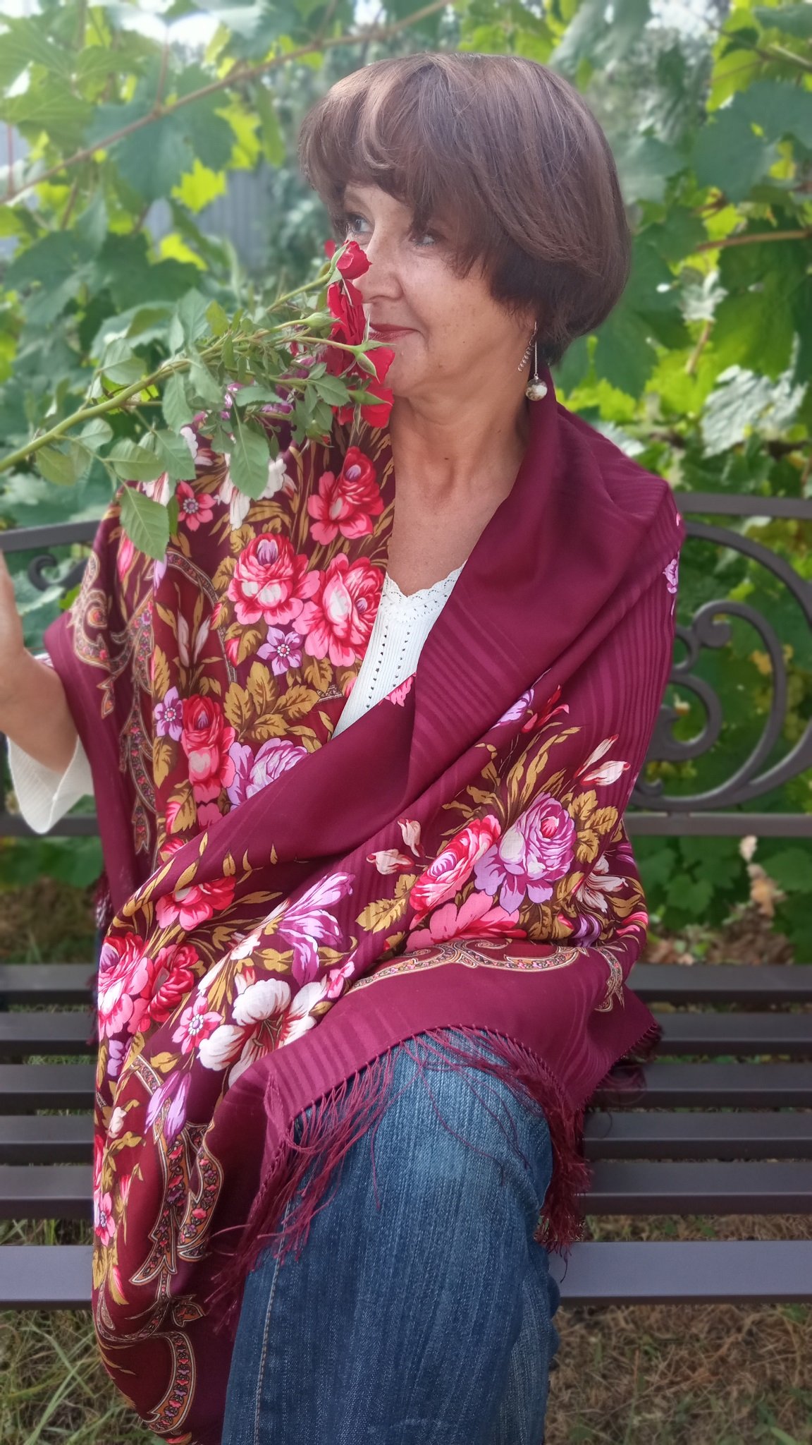 Да таких фото и не пару смотреть - наслаждение! Как вам идут шали, и как хороша Славянка! Эти ее букеты с земляничными листьями...ну не налюбоваться, я зимой Славянку ,если не ношу, достаю на кресло. И радуюсь. А носить..ну, так много с чем. С черным, с песочным...Кстати, лавандовое пальто оказалось невероятно дружественным почти ко всем моим шалям, прямо очередь к нему встала из платочков..