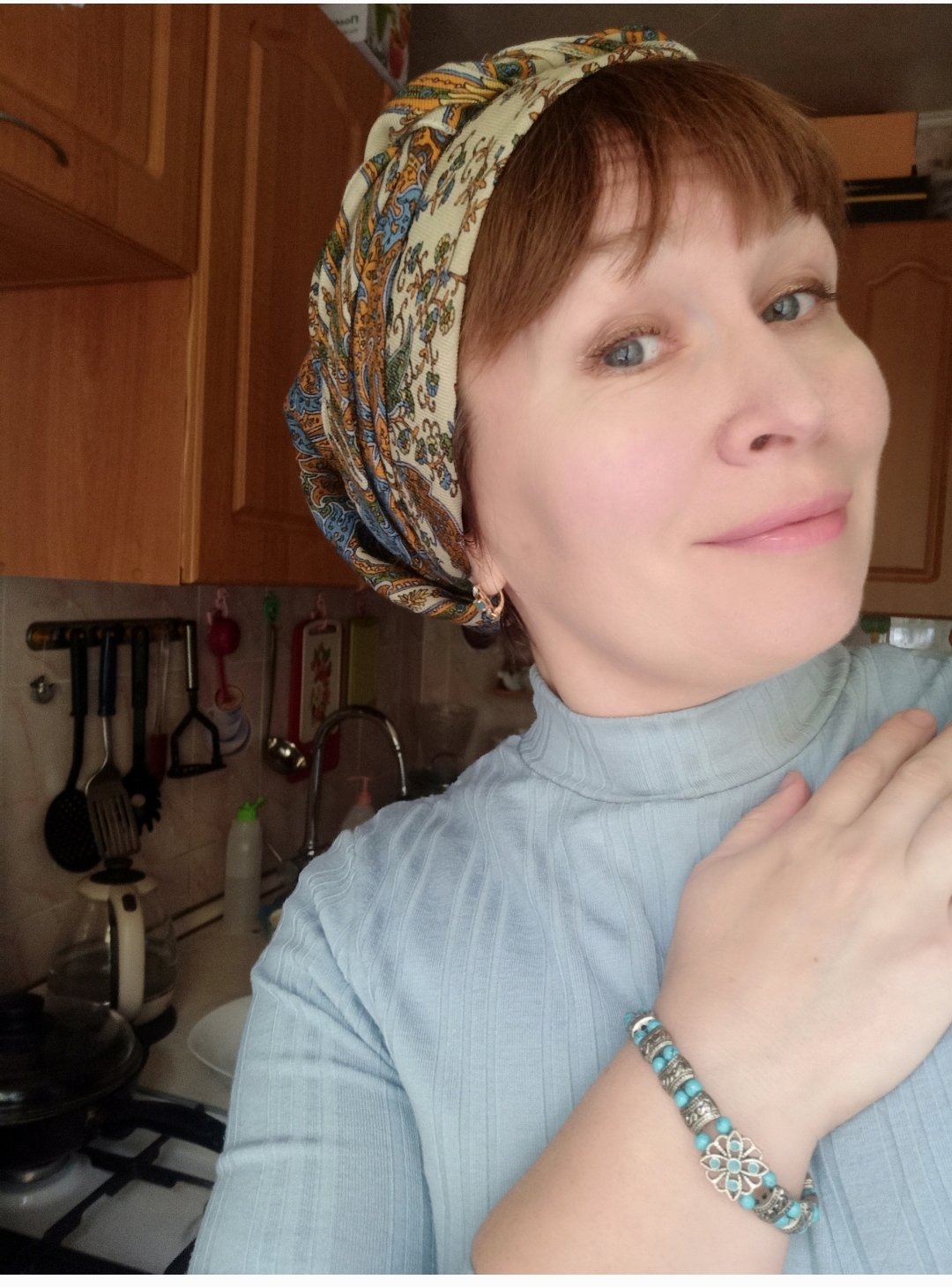 А к Марине_Мари01 всегда присматриваюсь! Особенно, когда её глаза так зажигает прекрасным голубым цветом очередной платочек. Значит, и мне его надо примерить! ?*():