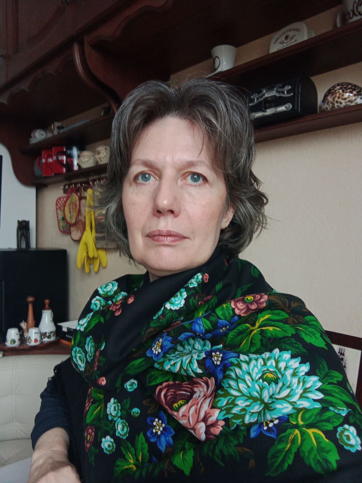 Люба, милая Незабудка. А мы ж не наряжаемся, просто живем так, в платках. Иногда в элегантно серых.