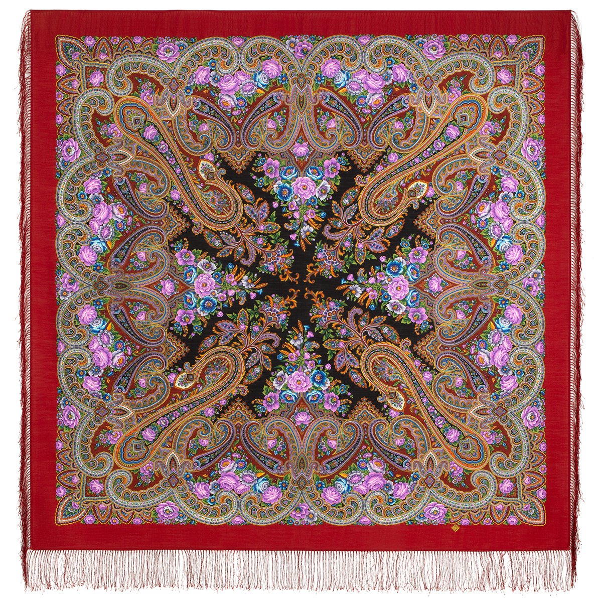 Платок шерстяной с шелковой бахромой, 146x146 см