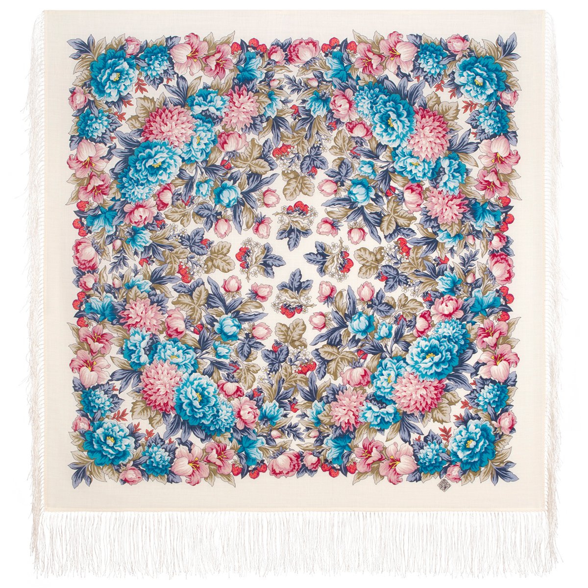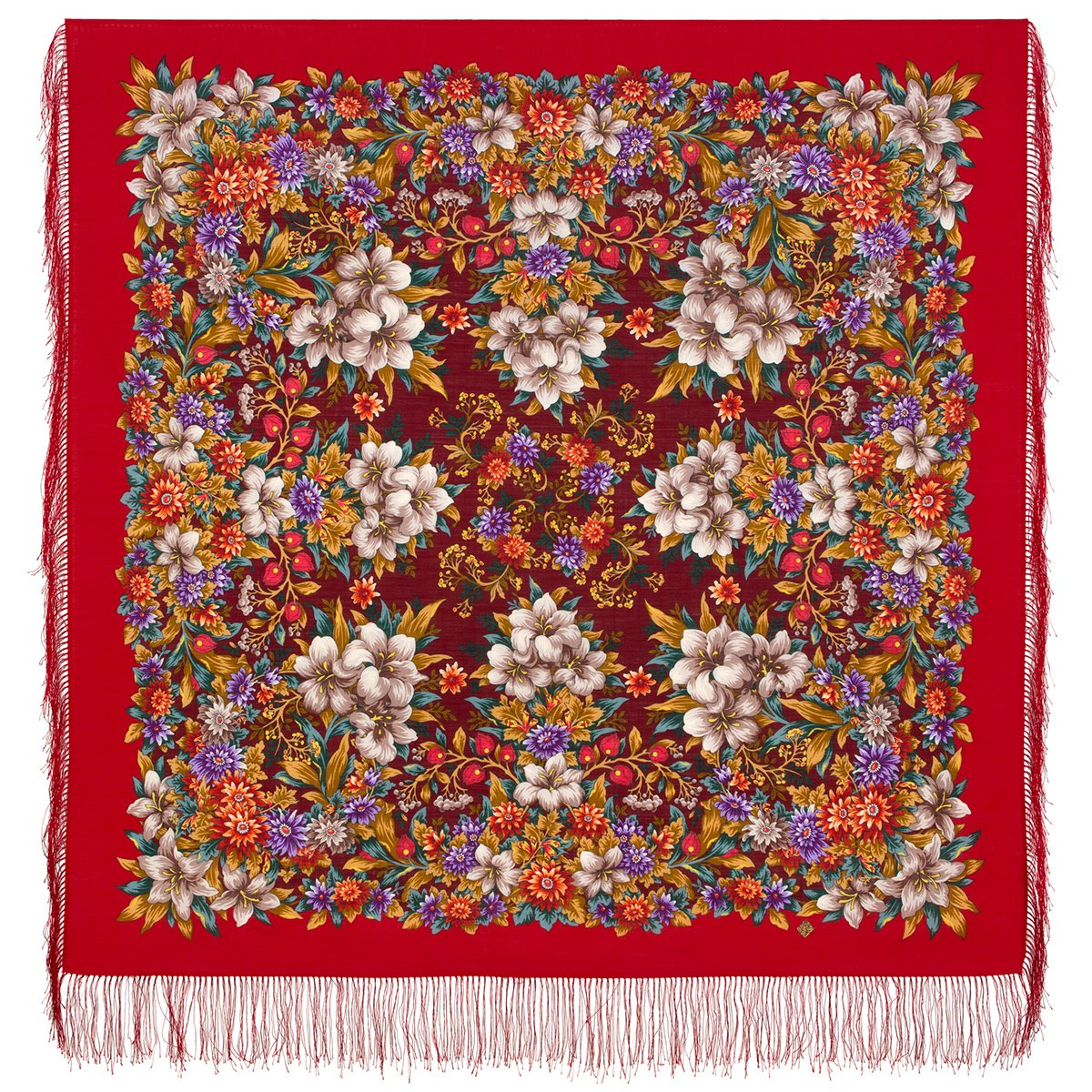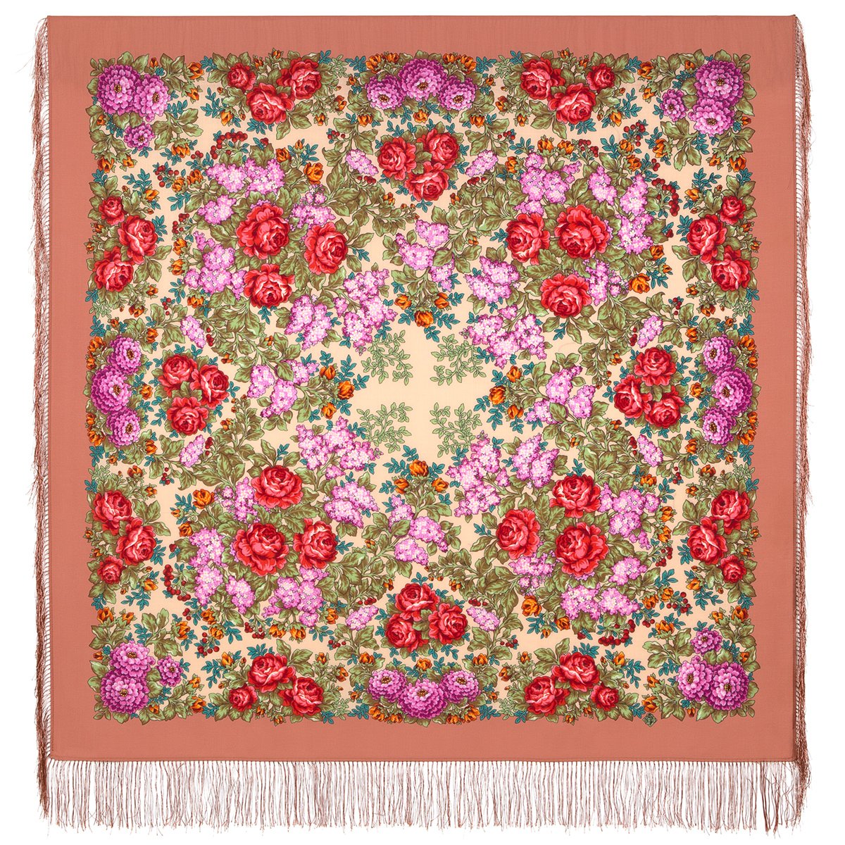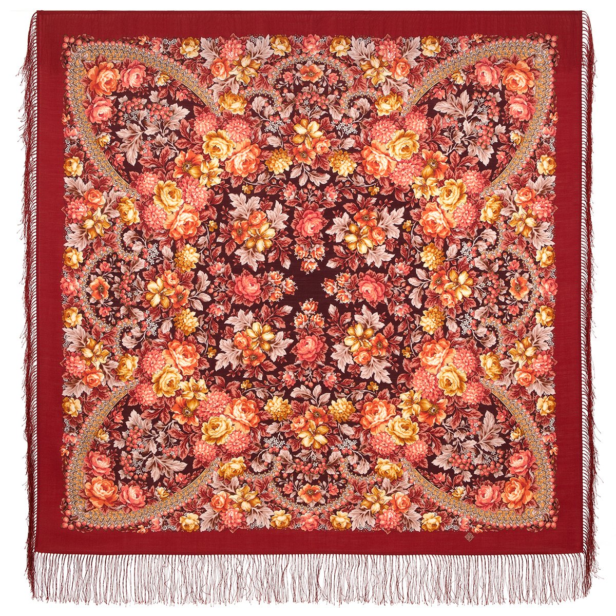 Платок шерстяной с шелковой бахромой, 125х125 см