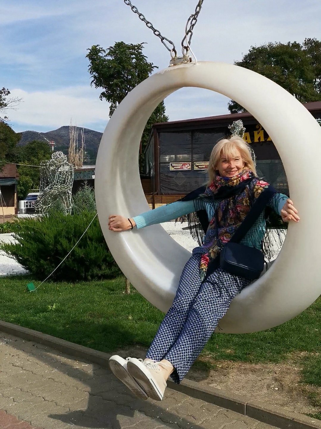 Зинуль, это я во дворе, на качелях, её распустила во всей красе, а носила скромно. По примеру красавицы Марии. Вот-мой эталон для подражания! viewtopic.php?f=3&t=2825&start=18510#p198925
