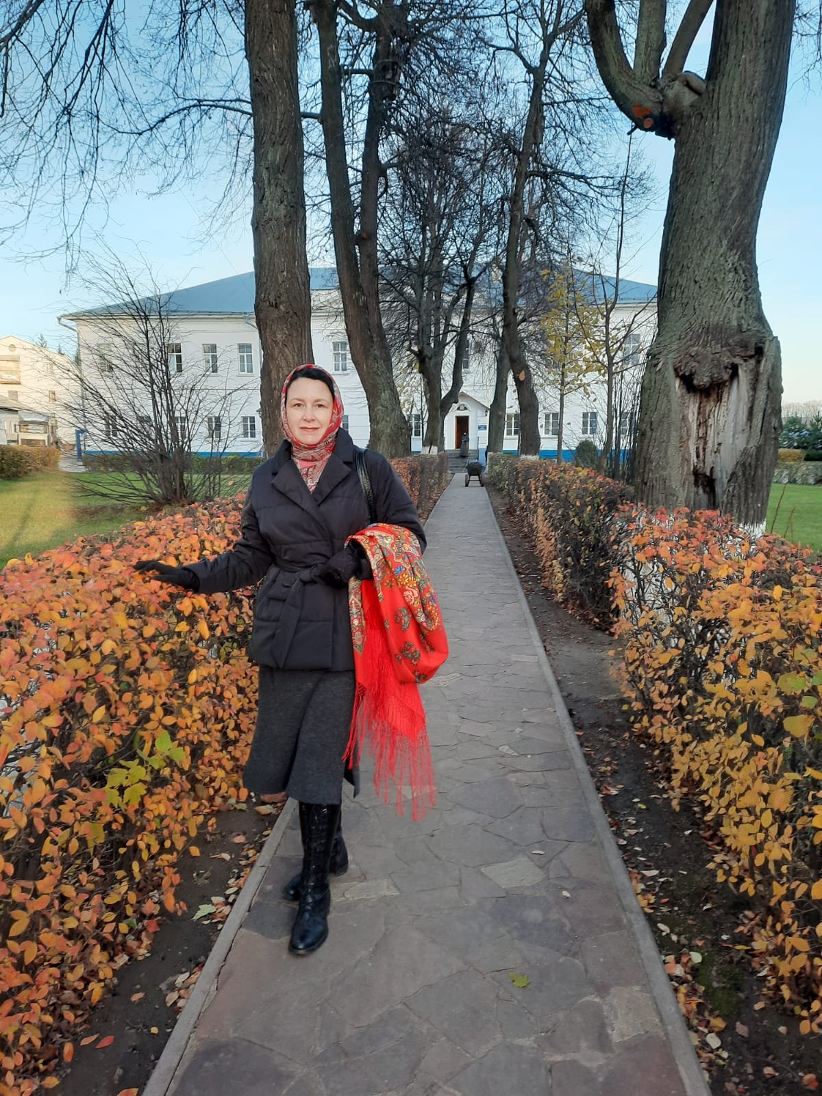 Моя осень пробегает по тропинкам от дома и по делам. Фото на ходу в редкий погожий день с платком-исключением. Чернопольные мне никак не подходили и вот сбылось. Цветочные бусы, где чёрного как бы и нет, хотя он есть. Обожаю угольки роз - светятся и румянят лицо.