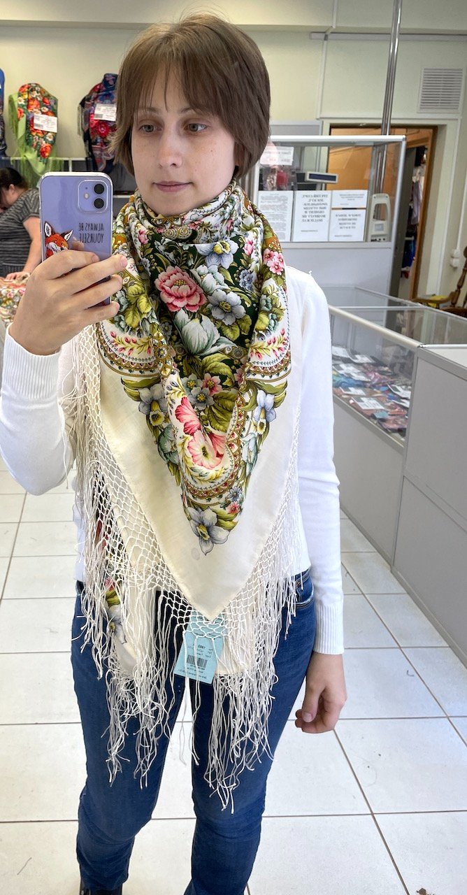 Демонстрируем ношение платков и шалей.
