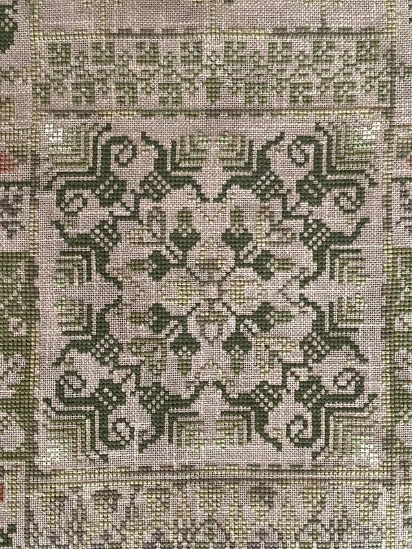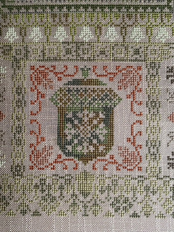 Света сегодня мало и безбожно искажает камера почти все цвета. В реальности теплый, сливочно-зеленоватый фон основы и мулине ей в тон.