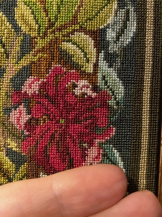 У меня ,в обычной вышивке крестом, есть две мелких работы на гобеленовой канве «Goblenset» ( уже показывала здесь на сайте), где после снятия с пялец крестик чуть меньше 1 мм. Около 10 стежков в 1 см. Крестик ( тогда моим решением, из-за боязни перекоса) получился в одну нить толстый--рекомендован гобеленовый шов в одну нить. На фото в сильной натяжке. Эти работы самые любимые! Они то и получились самые живописные, из всего осиленного мной. Тоненьким шелком вышивала очень давно гладью--поверхностно знакома.