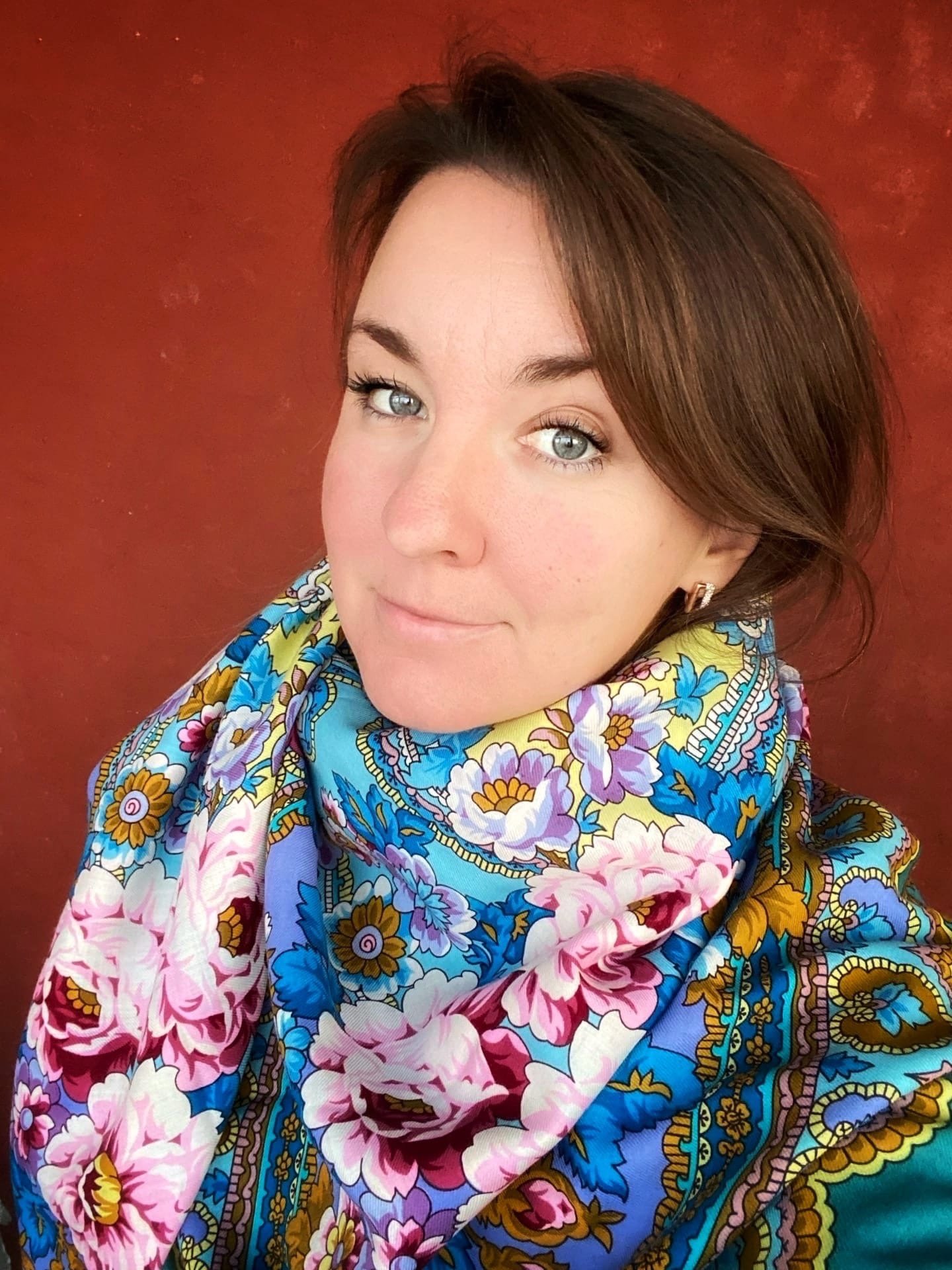 Белгородочка, как мне понравилось Диво дивное на вас! Увлечение шалями научило, что часто платки идут не столько к пресловутому цветотипу, сколько к образу в целом... или к характеру...по-разному это все бывает. Но вот почему-то именно эта темпераментная шаль очень идет вам. На мой вкус, даже больше, чем чудесный политкорректный Волшебный узор".