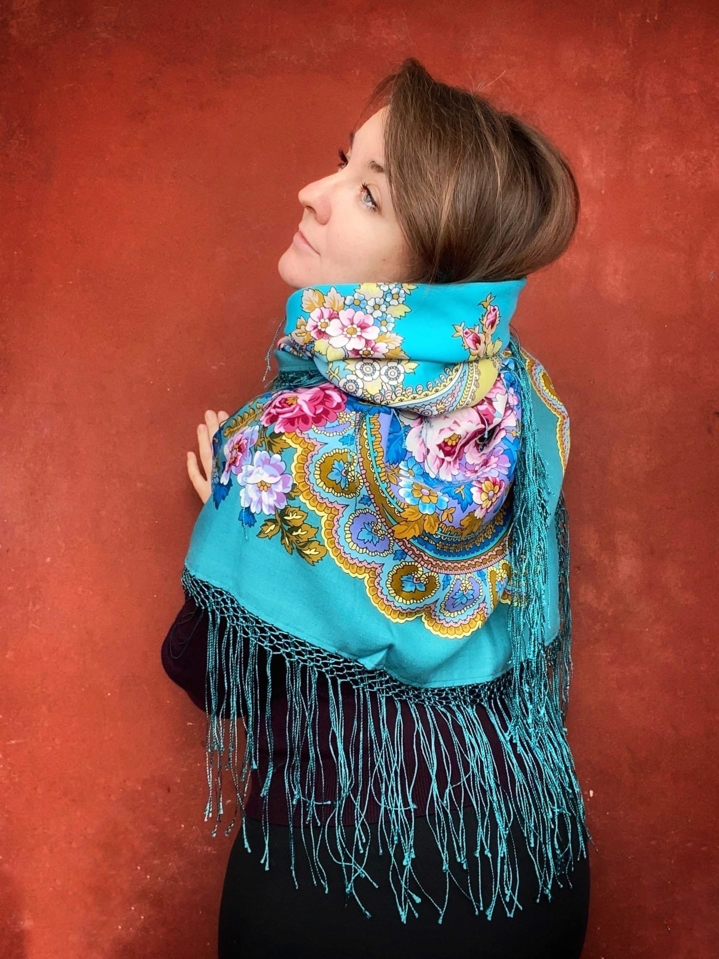 Катя, прекрасно! ^% Последнее фото, будто как барышня из Института благородных девиц. Ах, как бахрома красиво легла на изящный изгиб талии! И этот "капюшончик" шали, и перекинутый хвостик - всё так прекрасно и неожиданно ново. Любуюсь на эту фотографию, на этот образ!