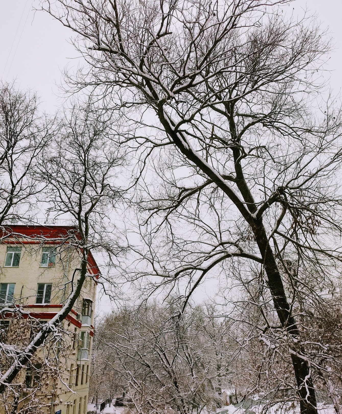 Почти забравшись на крышу и затаив дыхание , поразглядывала заснеженные узоры ветвей и теней!