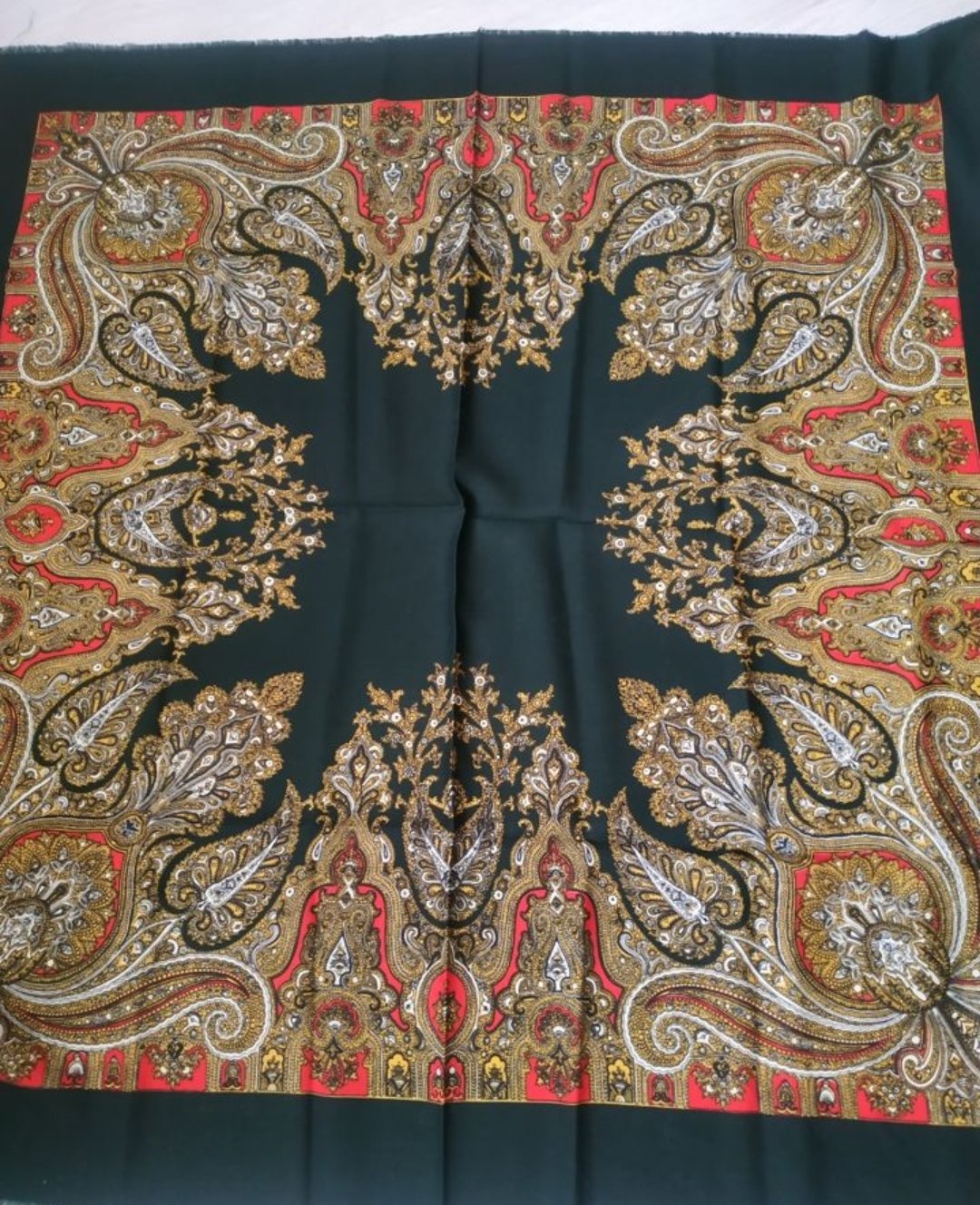 Черный шерстяной платок с шерстяной бахромой (приблизительно 92*92)
