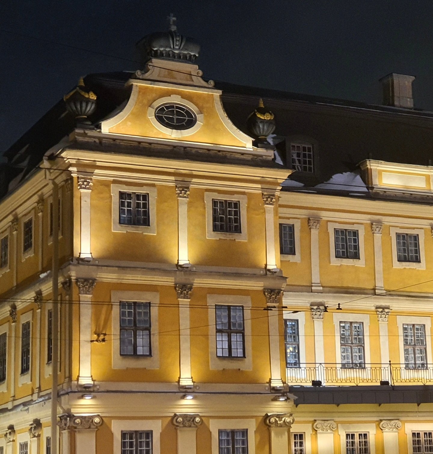 и синяя ночь в окошках, и тень ограды на замёрзшей реке, и барокко с подсветкой...