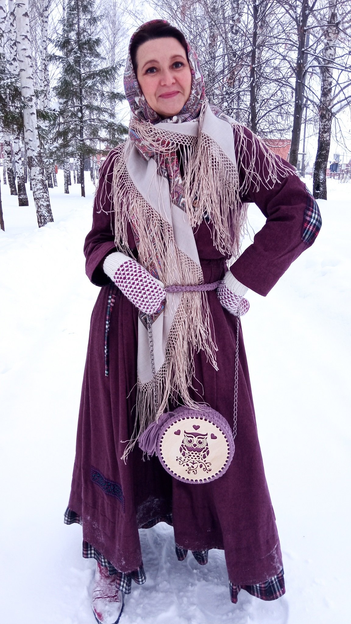 Супер наряд! И варежки в тему, и сапоги в тон.