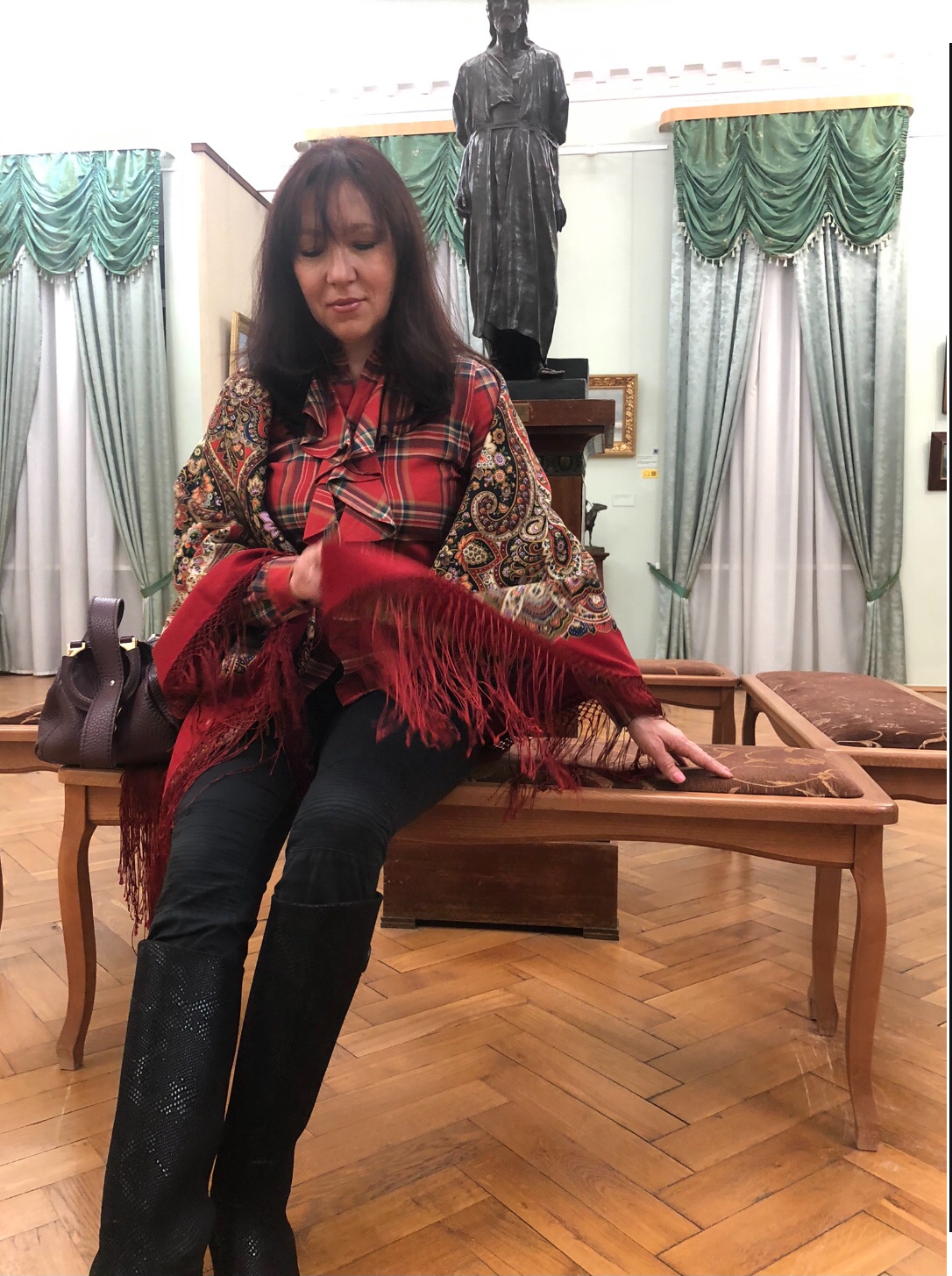 olgaballet_Оля, очень даже интересно смотрится Женское счастье с блузкой. Клетка в цвет каймы у шали. Всё очень гармонично. Ничего не напрягает.