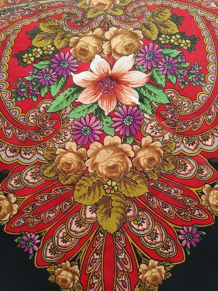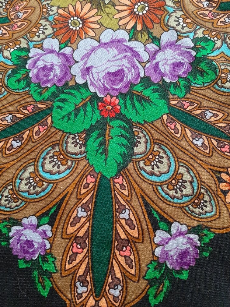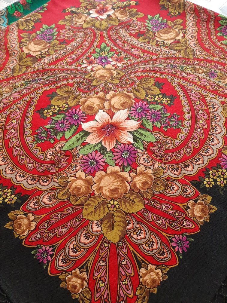 Оксана, oksi ! Очень красивый "Царский дворик"! Нравится, что Кутузов не боится пышной декоративности, богатства цветочного рисунка. Но я к нему всё ещё присматриваюсь, пока не купила ни одного его платочка. Красивые, но.. что-то останавливает.