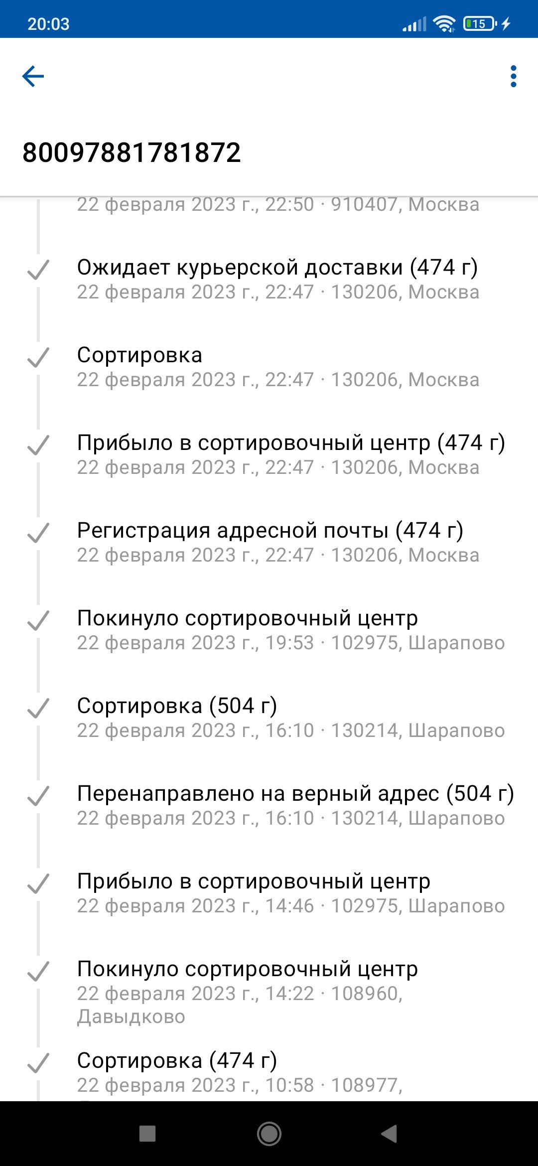 Была небольшая заминка со стороны ППМ: от присвоения трек-номера и до принятия в отделение прошел не один день. А потом... статус со свистом менялся.