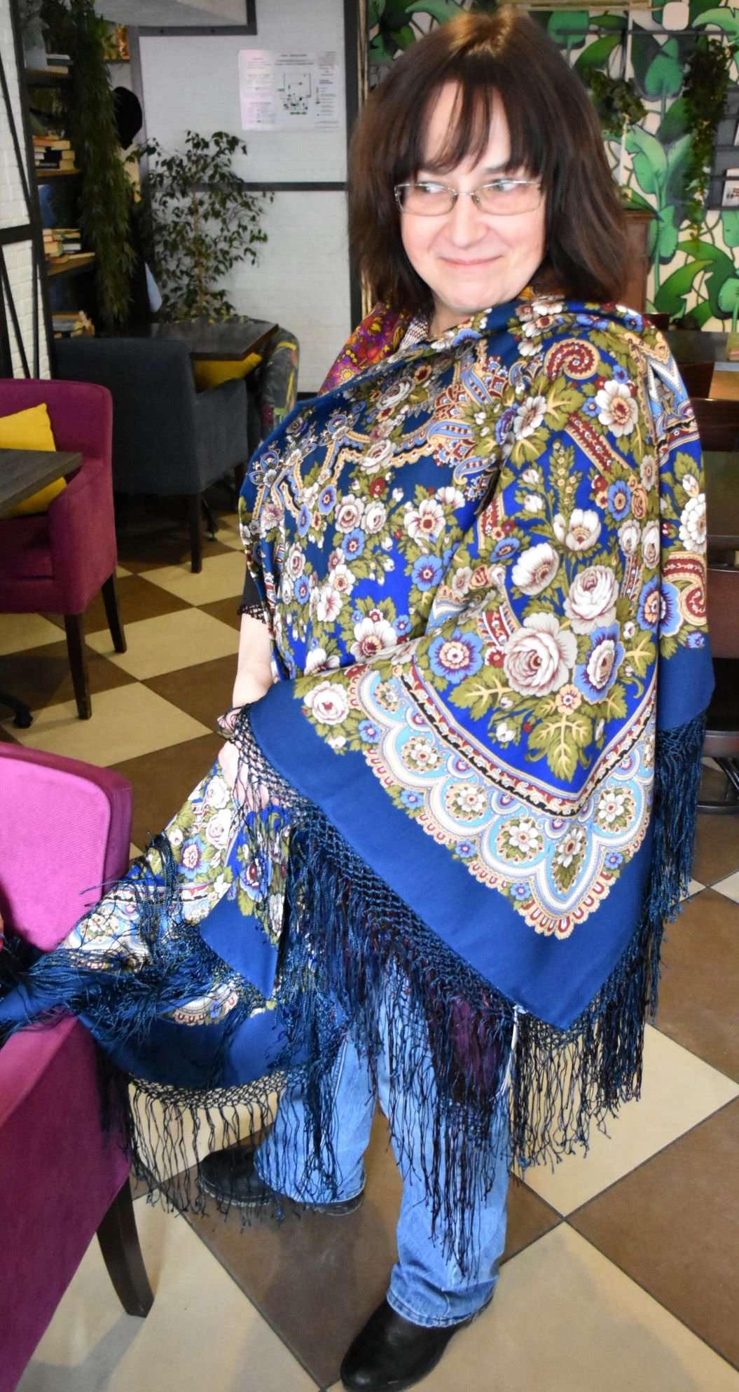 Но какой же красивый оттенок темно-голубого на этом платке!