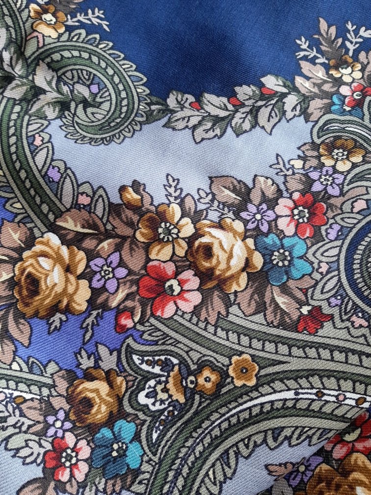 Шаль Клары Зиновьевой "Небесный" в 14 колорите. Цветопередача точная. Общая гамма сдержанная, слегка припыленная.