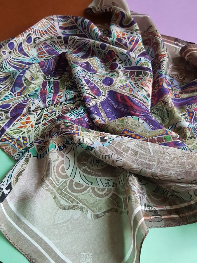 Платок шелковый (крепдешин) "10403", вид 2, 65х65 см. Художник: Макаганчук Инна.