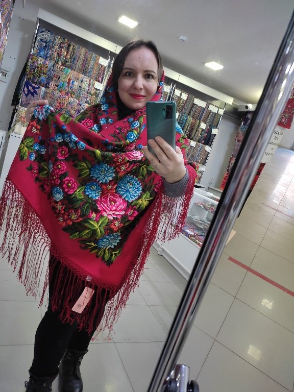На фото стандарт, на котором пятнами присутствуют самые разные оттенки красного. Вот те куски шали, которые самые темные, мне очень нравятся и идут. Заказала на ВБ 1 сорт - пришел равномерно светленький, не впечатлил на мне.
