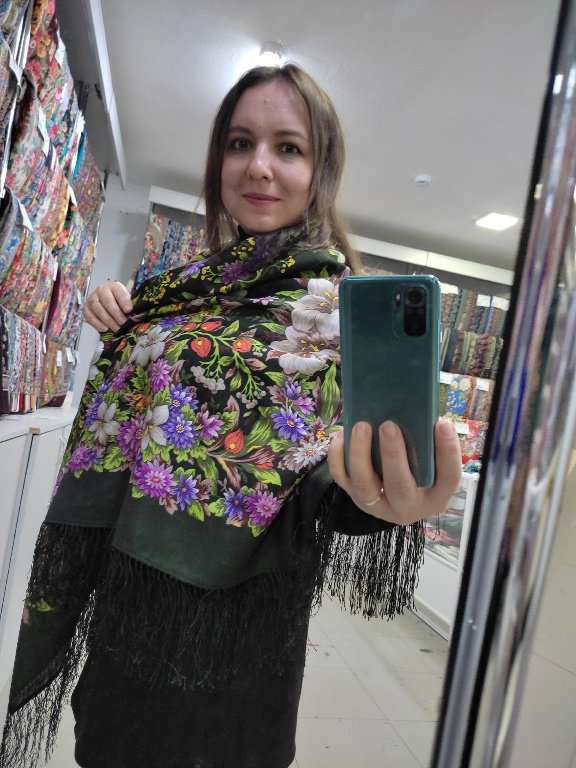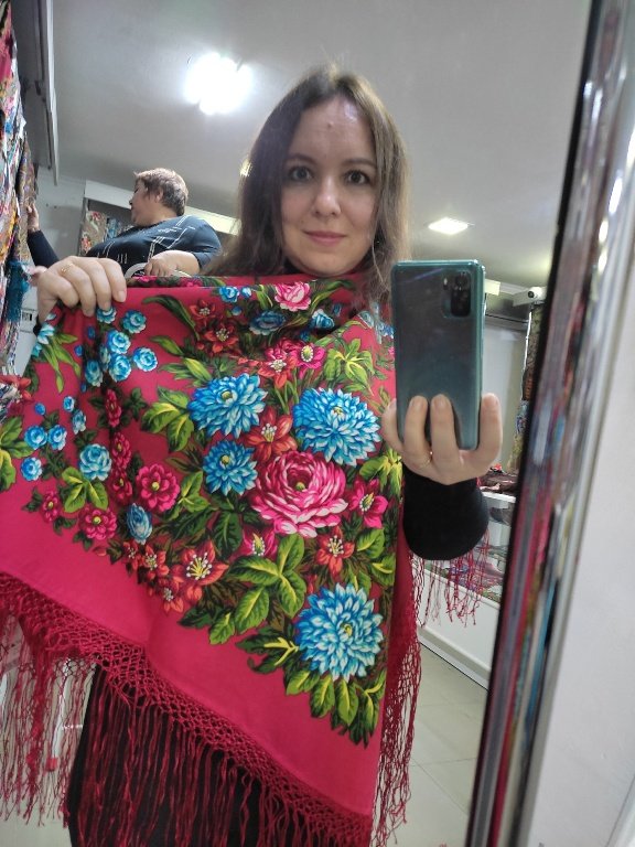 На фото стандарт, на котором пятнами присутствуют самые разные оттенки красного. Вот те куски шали, которые самые темные, мне очень нравятся и идут. Заказала на ВБ 1 сорт - пришел равномерно светленький, не впечатлил на мне.