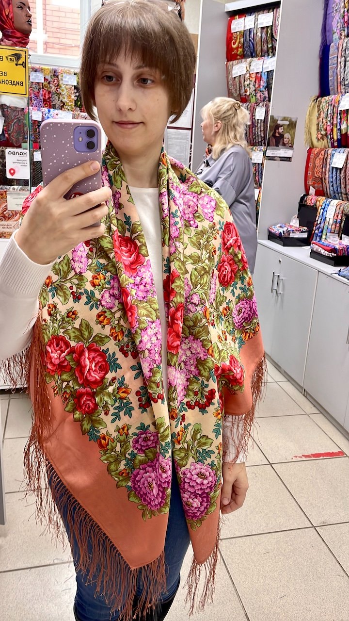 Демонстрируем ношение платков и шалей.