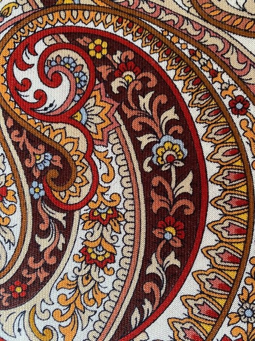 Контрастный, нежный и деликатный рисунок! Опасалась неонового, персикового-желтого. Нет --есть похожий цвет, но он больше "тыквенный сок". Очень прекрасный--красный георгин. Много прожилок с осторожным темно-розовым. Общий фон , как обычно молочно-сливочный.