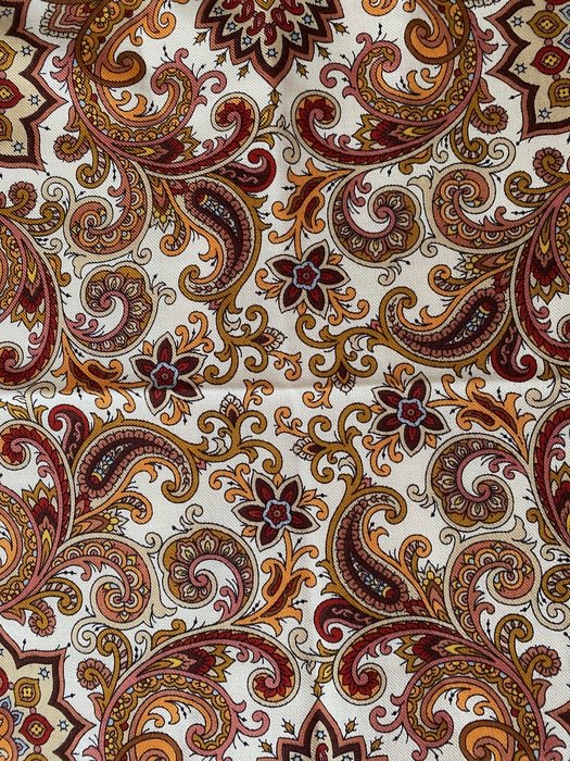 Контрастный, нежный и деликатный рисунок! Опасалась неонового, персикового-желтого. Нет --есть похожий цвет, но он больше "тыквенный сок". Очень прекрасный--красный георгин. Много прожилок с осторожным темно-розовым. Общий фон , как обычно молочно-сливочный.