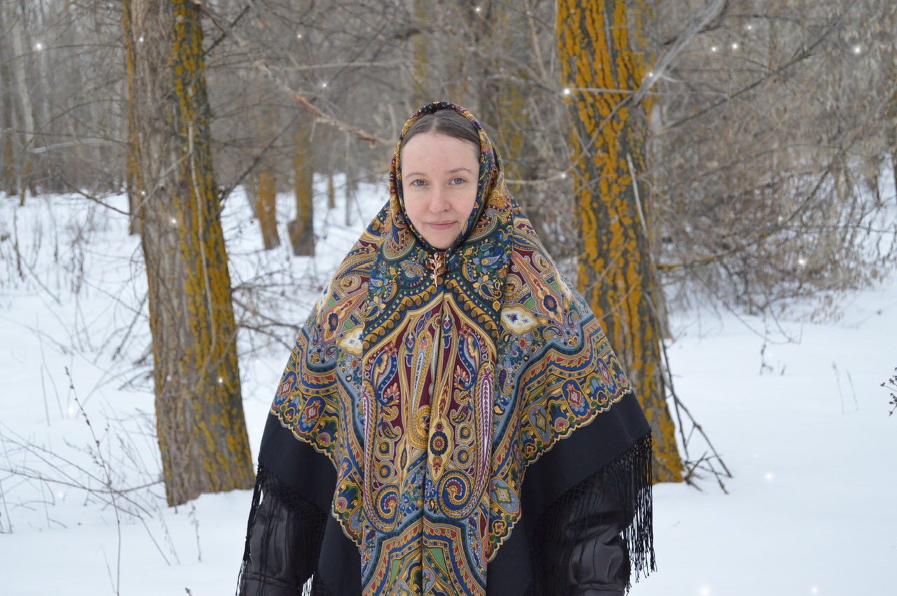 Демонстрируем ношение платков и шалей.