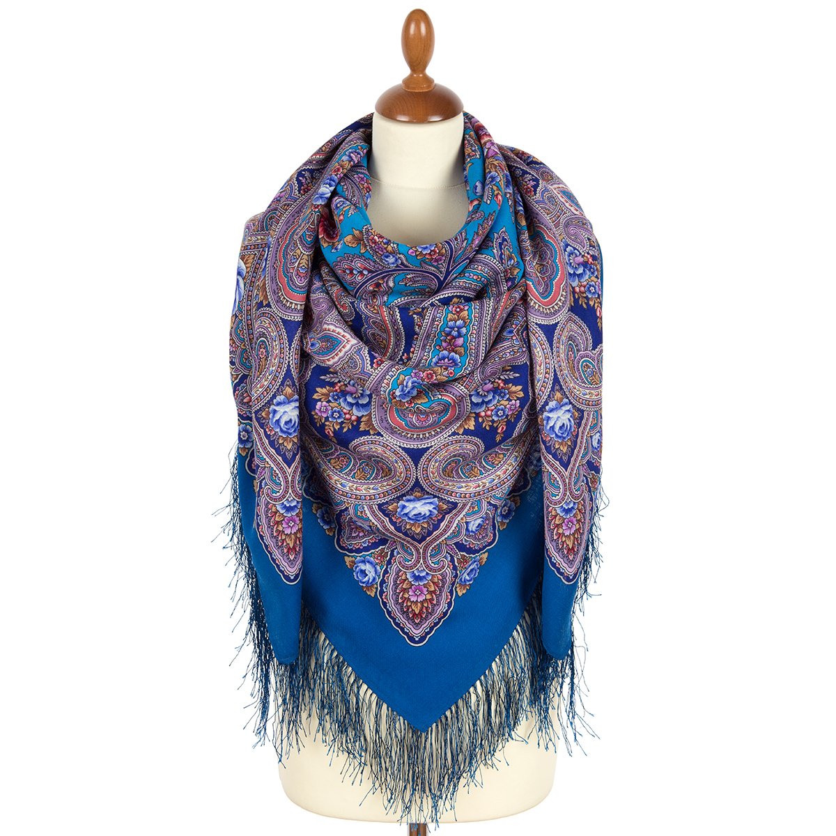 Платок шерстяной с шелковой бахромой, 146x146 см
