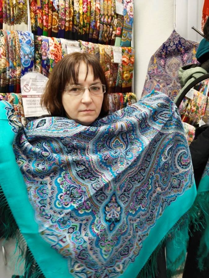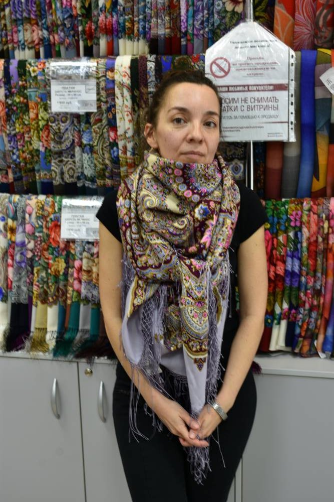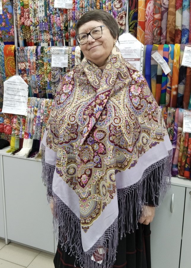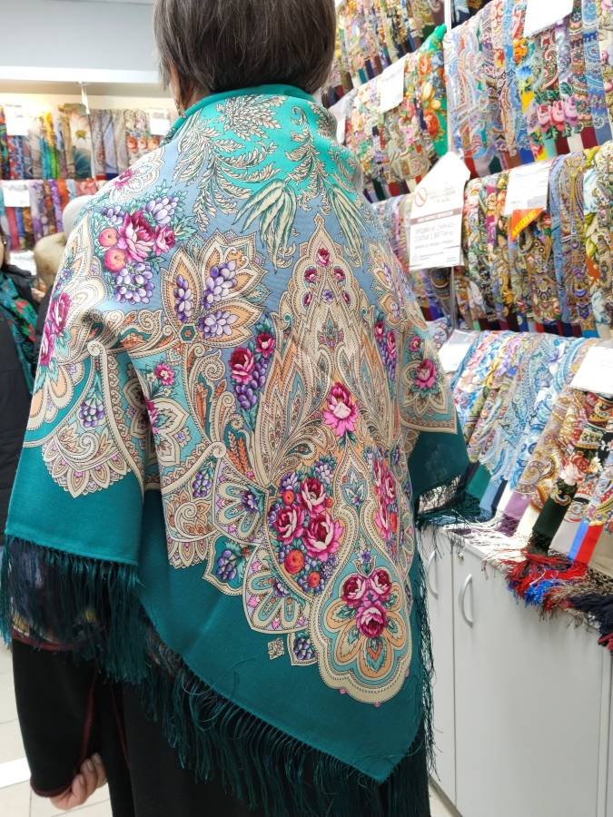 Прошу прощения, но и шаль, и платок малость помяты. Последние экземпляры, сняли с витрины, поэтому немного такие.