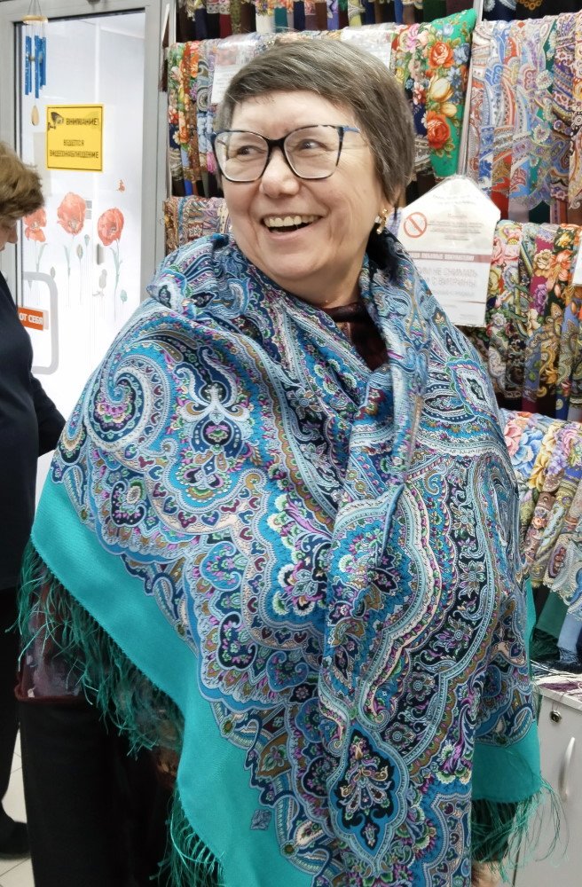 Прошу прощения, но и шаль, и платок малость помяты. Последние экземпляры, сняли с витрины, поэтому немного такие.