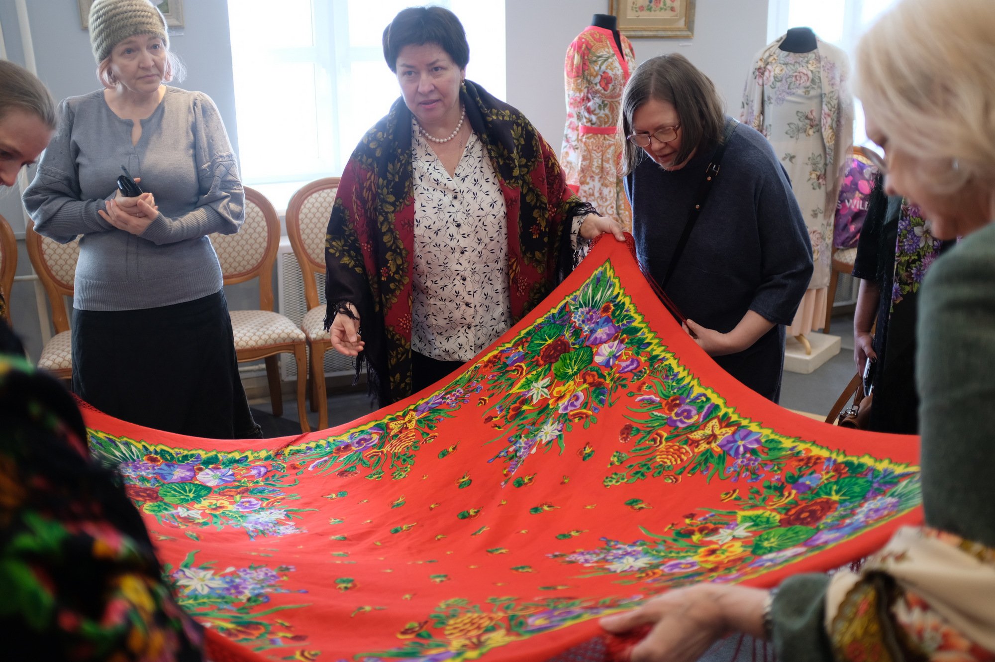 Подборка шалей из Большого сундука, многие из которых я видела живьём впервые, оформление зала, очень интересная и познавательная лекция с показом и рассказом про каждую шаль и её историю от Елены Владимировны, общение, встречи, улыбки - всё произвело на меня самое прекрасное впечатление!