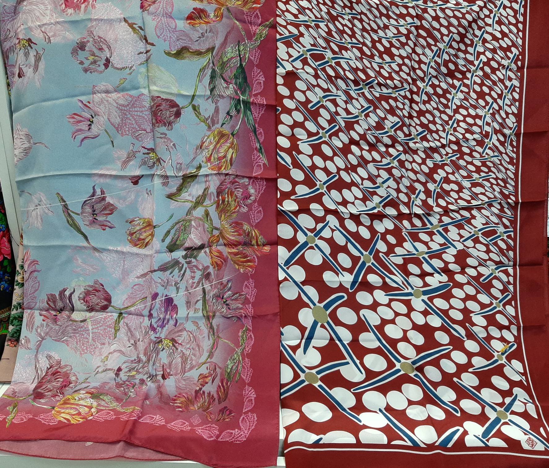 Уцененные шелковые платки 89х89 по 850 руб. Санкт-Петербург по 530 руб. Смотрите предыдущую страницу.