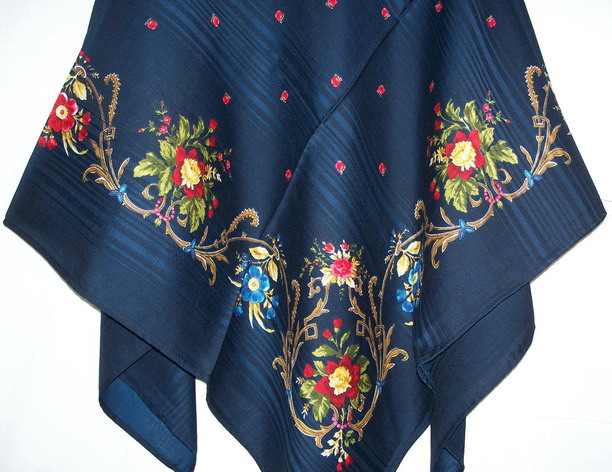 "Цветы России" тоже обещаю в ближайшее время показать покрупнее. Но меня они покорили именно в увеличенном показе в каталоге, а наяву все совпало, т.е. как в каталоге, так и в жизни. Прелестный платок, родной какой-то, лето вспоминается, сады, палисаднички у домов в маленьких городках России. Но ткань шероховатая, нет той нежности , как у шалей.