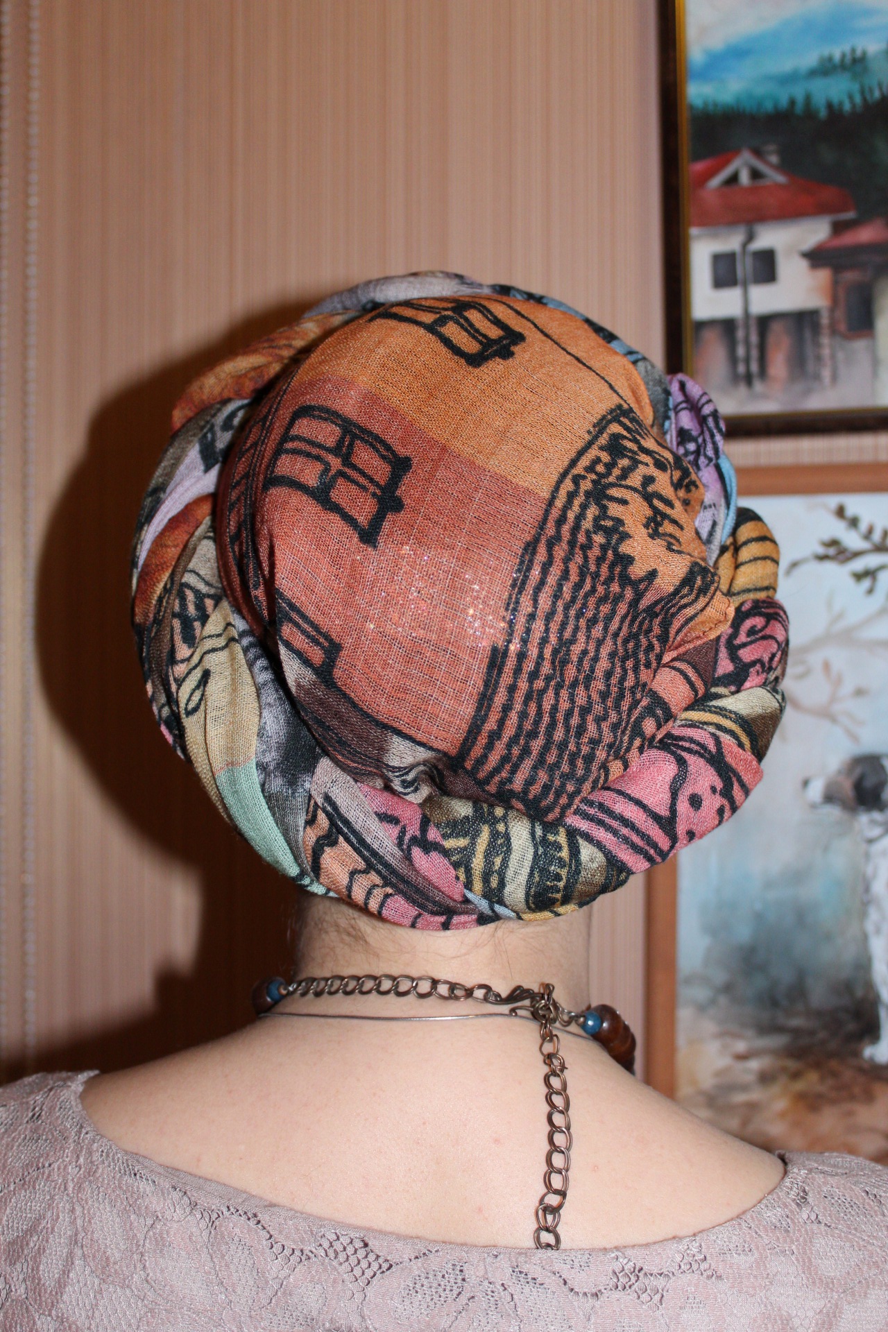 zareslava, Труня, спасибо. Попыталась завязать таким способ наш разреженный палантин № 10216. Для такого способа он длинноват, приходится укладывать конец вокруг головы или оставлять на плече. Зато на голове держится лучше платков.