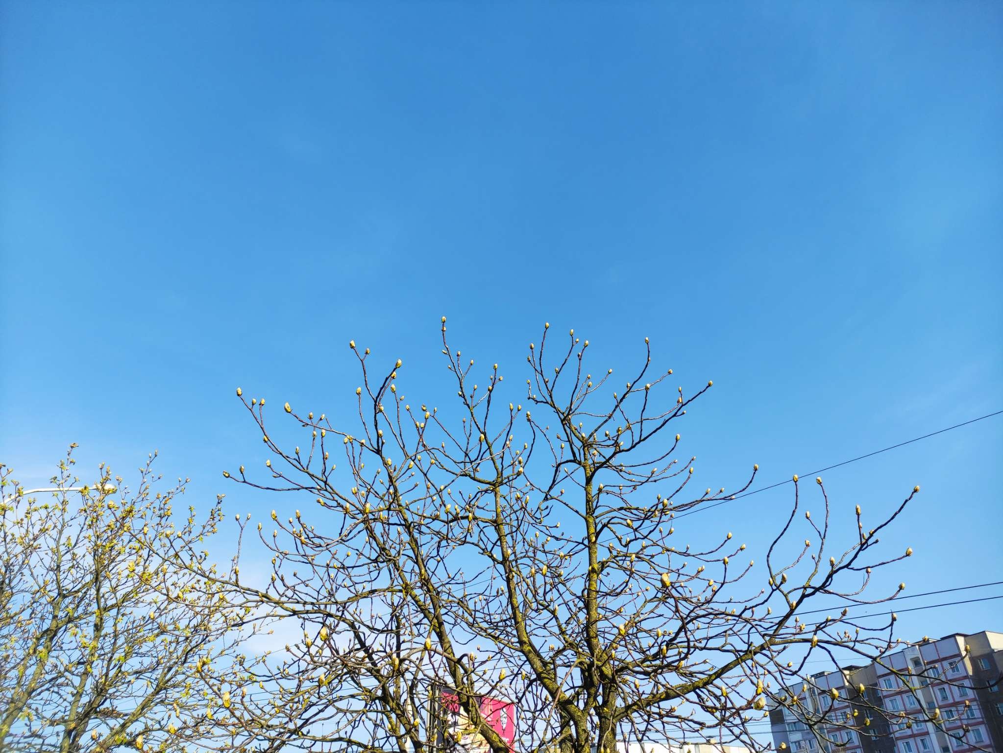 А жёлтая веточка на окне это форзиция, успела зацвести до возвращения зимы.