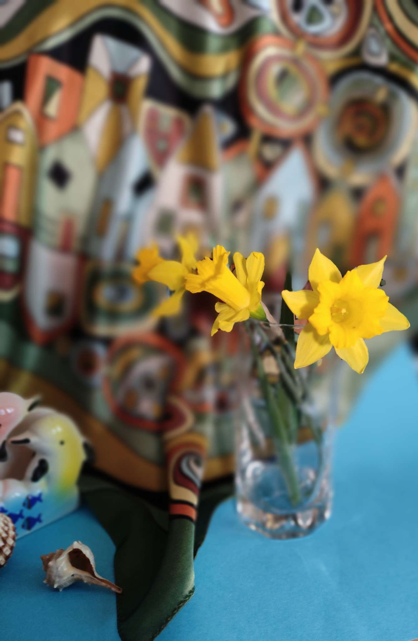 Платок шелковый (атлас) "Солнечный город", вид 9, 89х89 см. Художник: Жукова Елена.