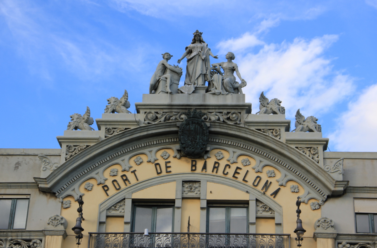 Хочу показать здание Порта Барселоны. Сначала я не могла понять, что за живописная драпировка на окнах.