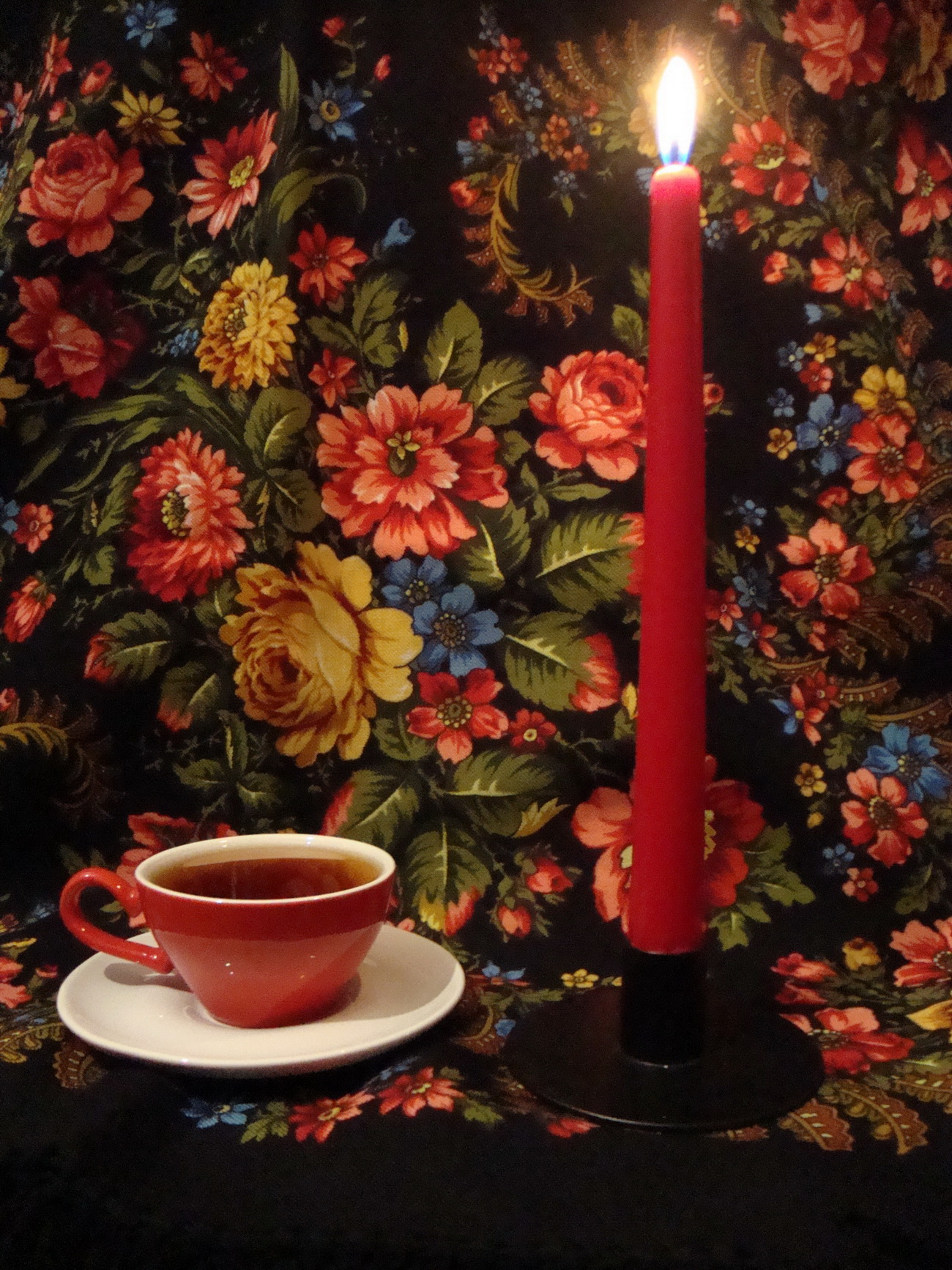 Симпатичное фото со свечкой. В "Цветах России" приятный красный цвет и весь платок теплый и спокойный. (Кликните, чтобы почитать оффтопик)...