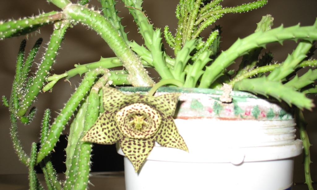 Это Стапелия. Цветы имею характерный запах падали, которым привлекают мух для опыления.
