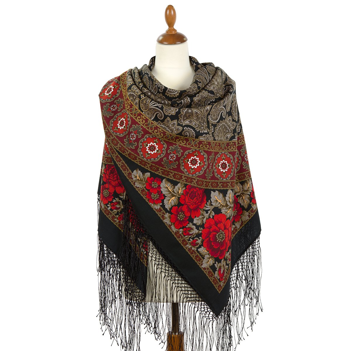 Платок шерстяной с шелковой бахромой, 125х125 см